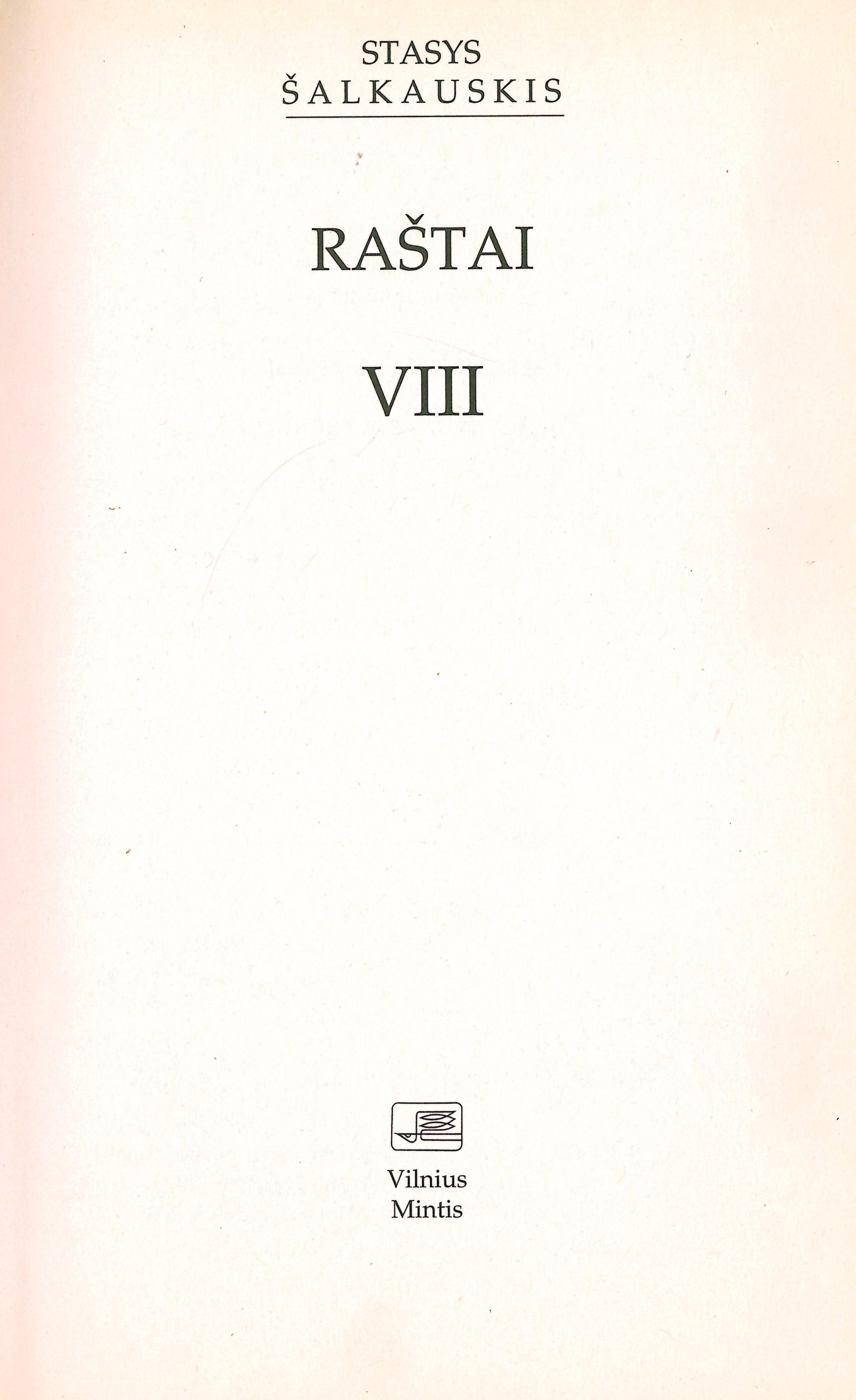 Raštai / Stasys Šalkauskis ; parengė Arūnas Sverdiolas. – Vilnius : Mintis, 1990-2012. – 9 tomai. – (Iš Lietuvos filosofijos palikimo)