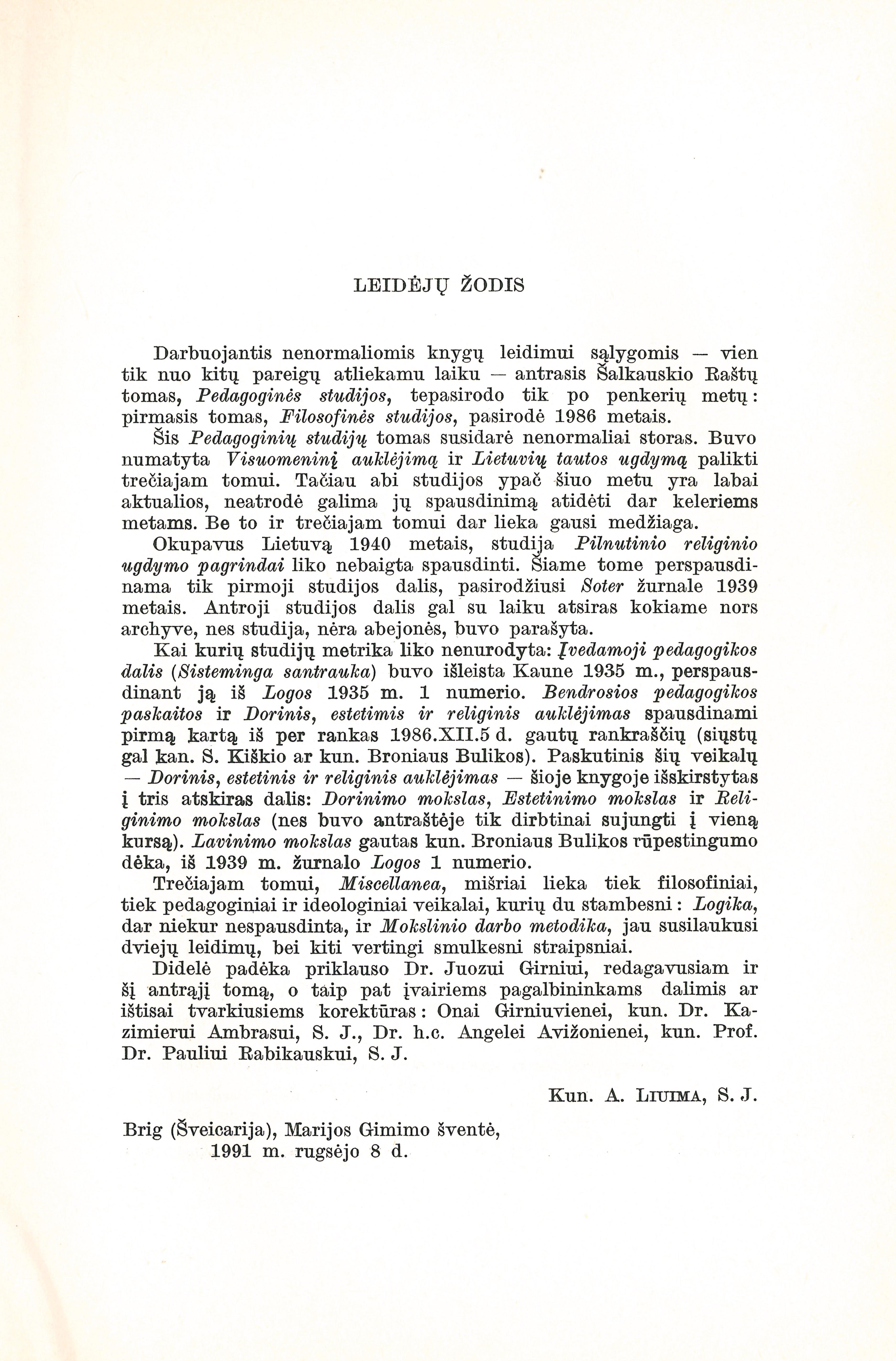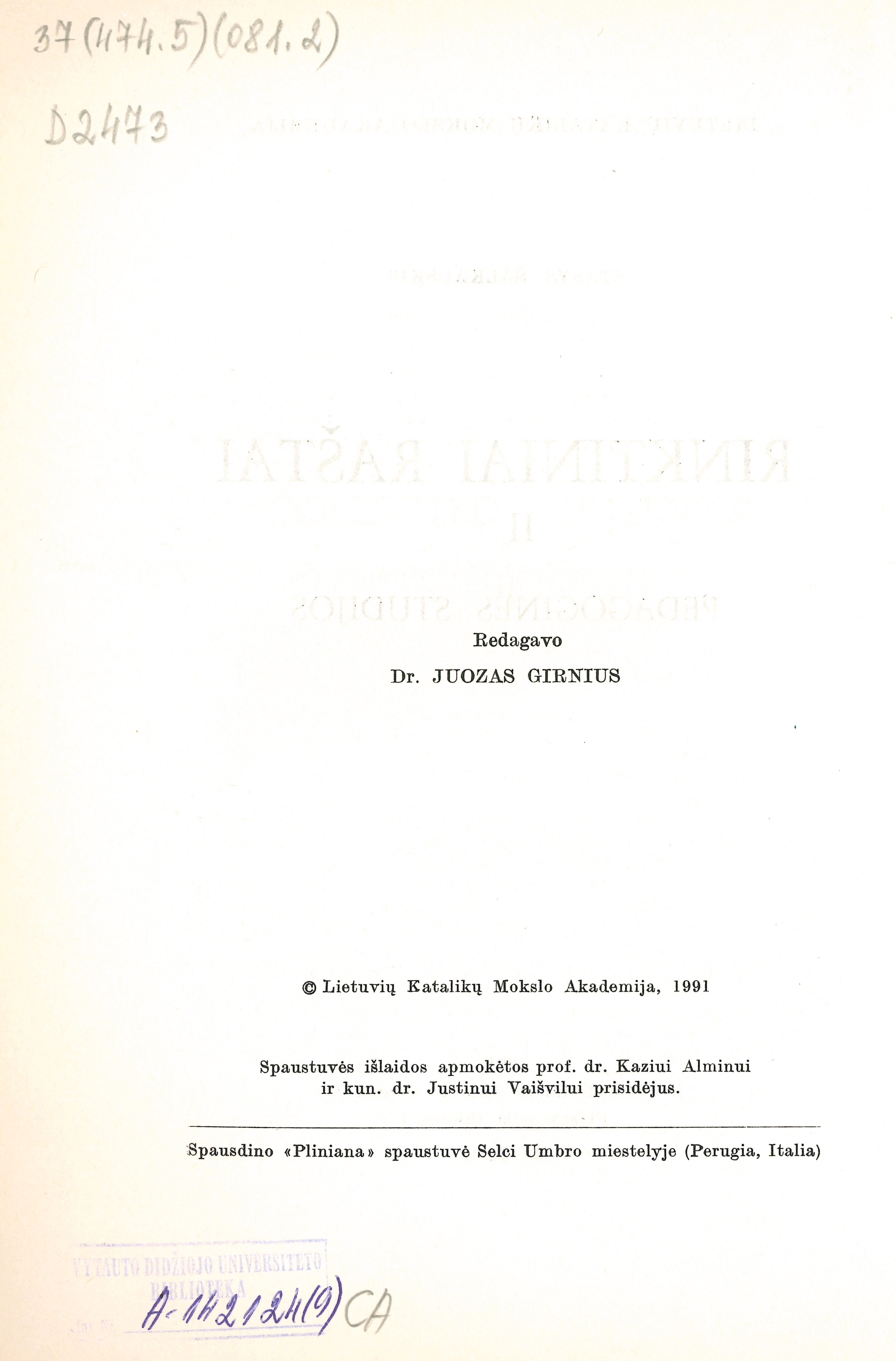 T. 2 : Pedagoginės studijos. – Roma, 1991.