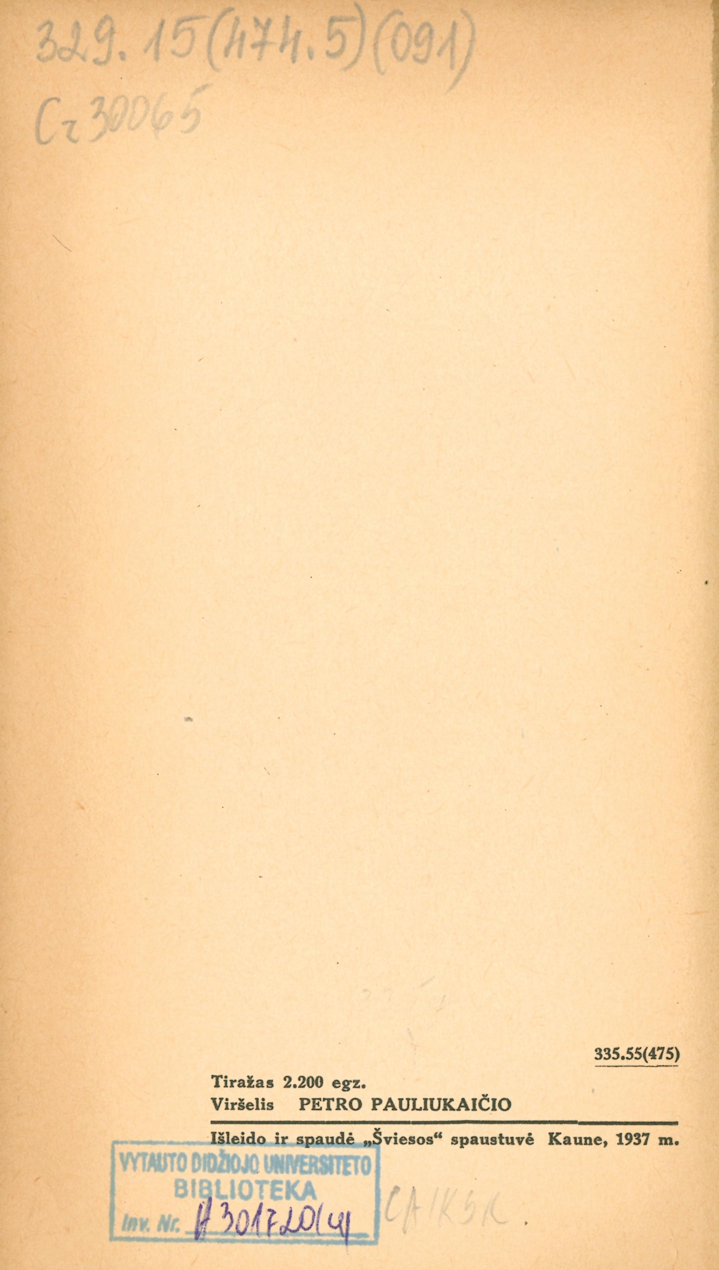 Published Kaunas : Šviesa, 1937