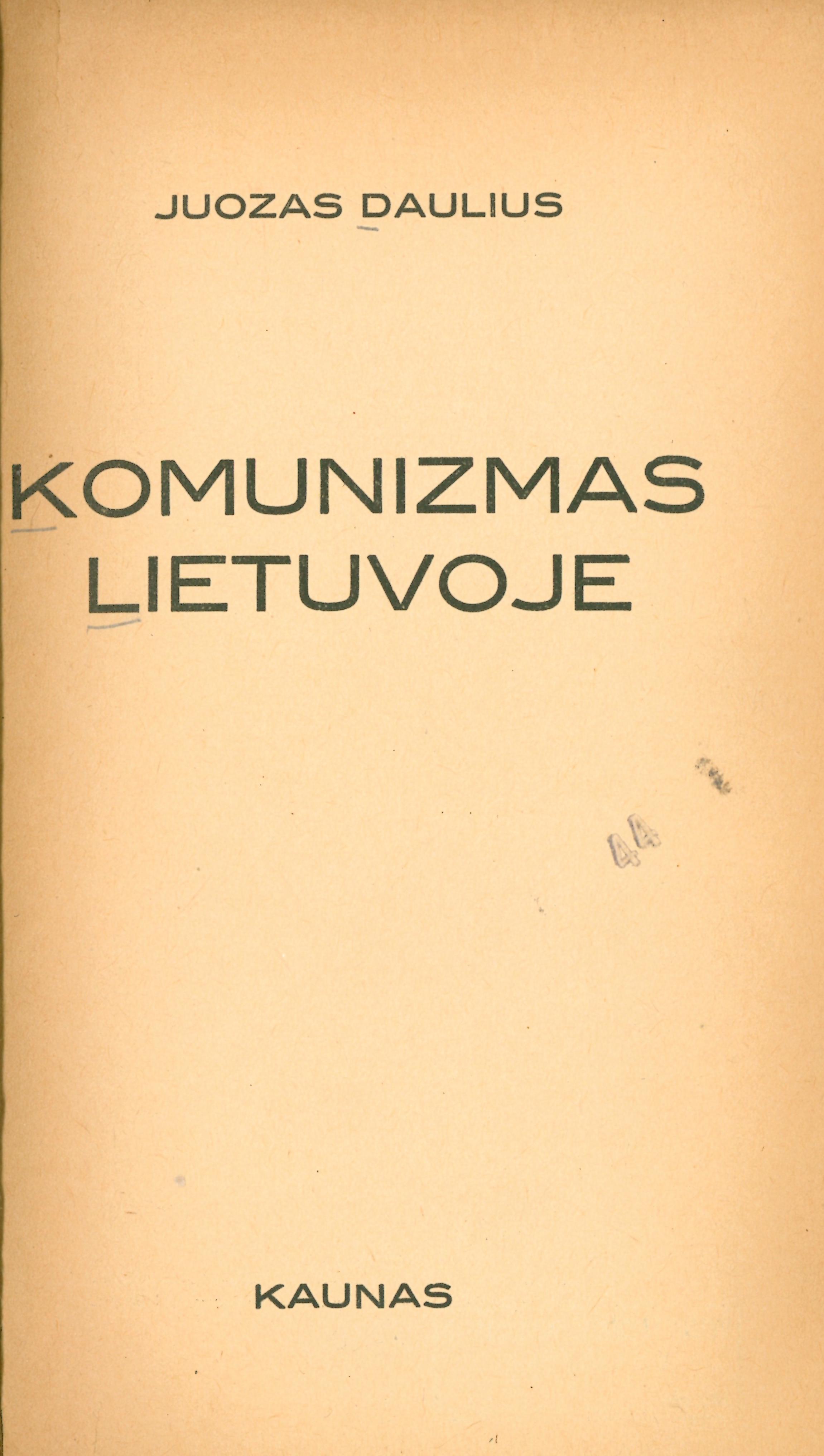 Komunizmas Lietuvoje / Juozas Daulius. – Kaunas, 1937. – 259 p.