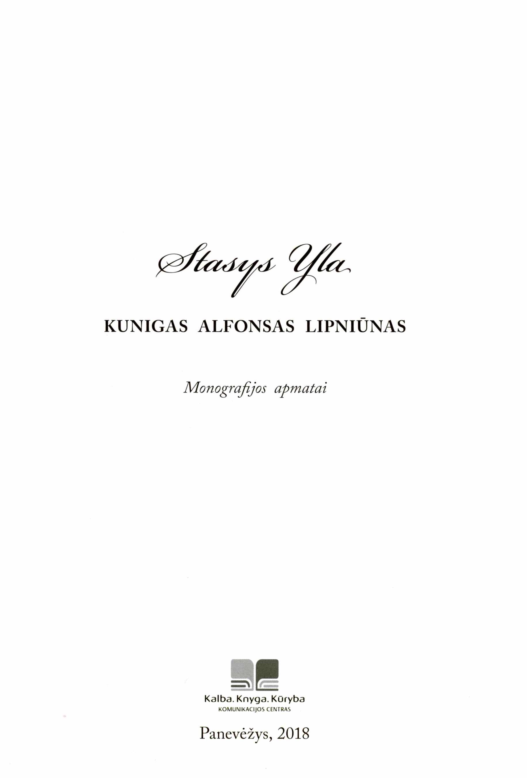 | Kunigas Alfonsas Lipniūnas: monografijos apmatai / Stasys Yla. – Panevėžys: Komunikacijos centras "Kalba. Knyga. Kūryba", 2018. – 214 p. [lt] | |