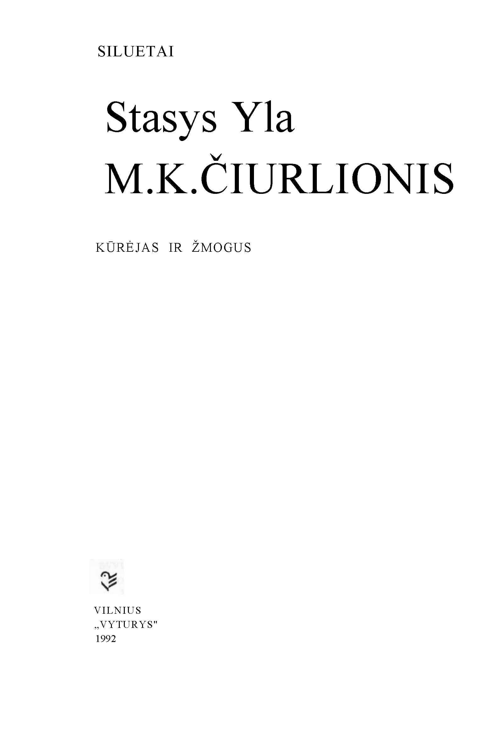 | Antraštė | M.K. Čiurlionis: kūrėjas ir žmogus / Stasys Yla. – 2–as leidimas. – Vilnius: Vyturys, 1992. – 399, 24 p. [lt] |