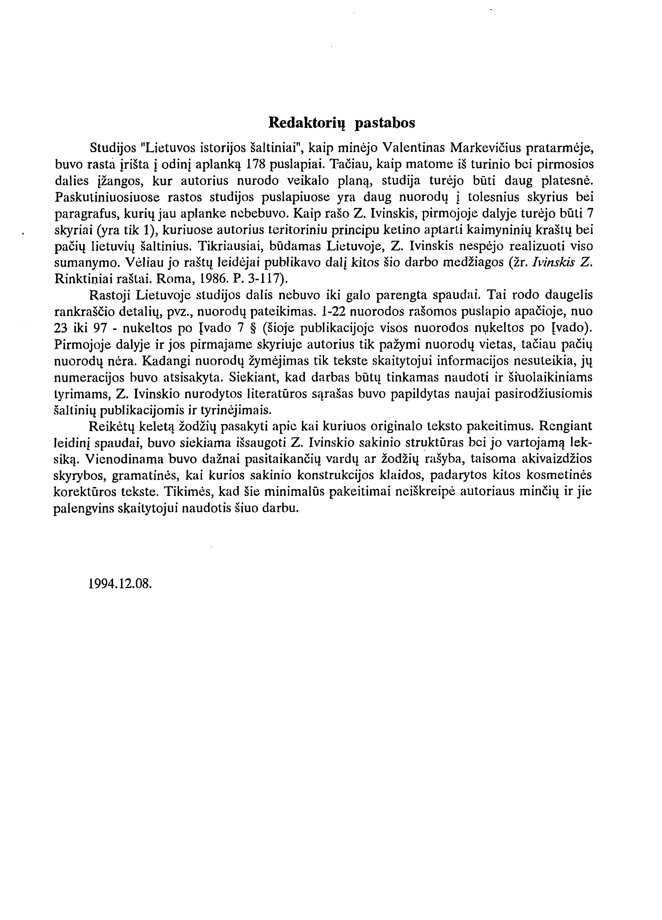 | Lietuvos istorijos šaltiniai / Zenonas Ivinskis. – Klaipėda: KU Vakarų Lietuvos ir Prūsijos istorijos centras, 1995. – 115 p. (Acta historica Universitatis Klaipedensis, t. 3) [Parengta 1941] [lt] | |