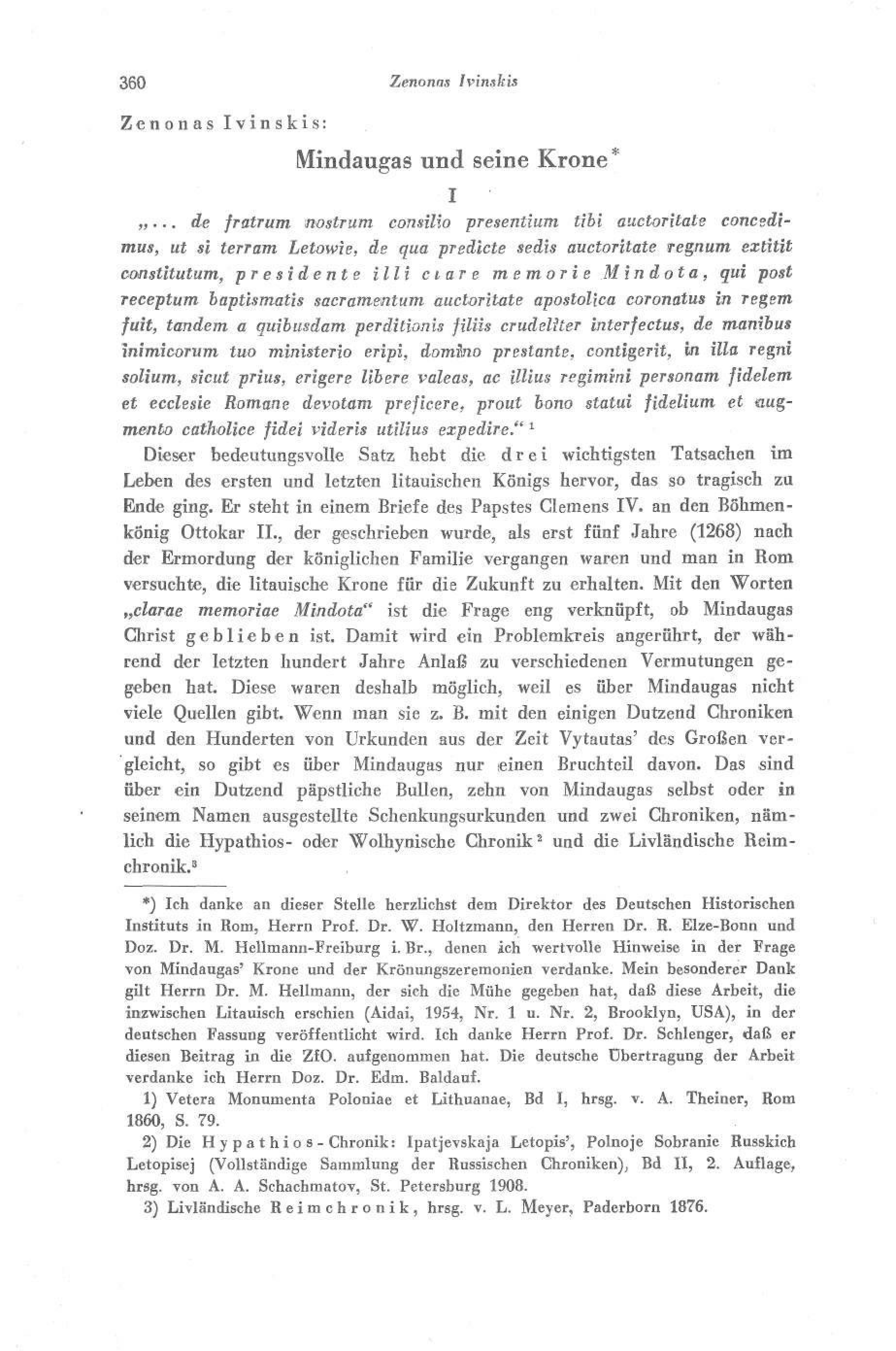 | Antraštė | Mindaugas und seine Krone / Zenonas Ivinskis. In: Zeitschrift für Ostforhung. 1954, Bd. 3, Heft. 3, p. 360–386. [de] |