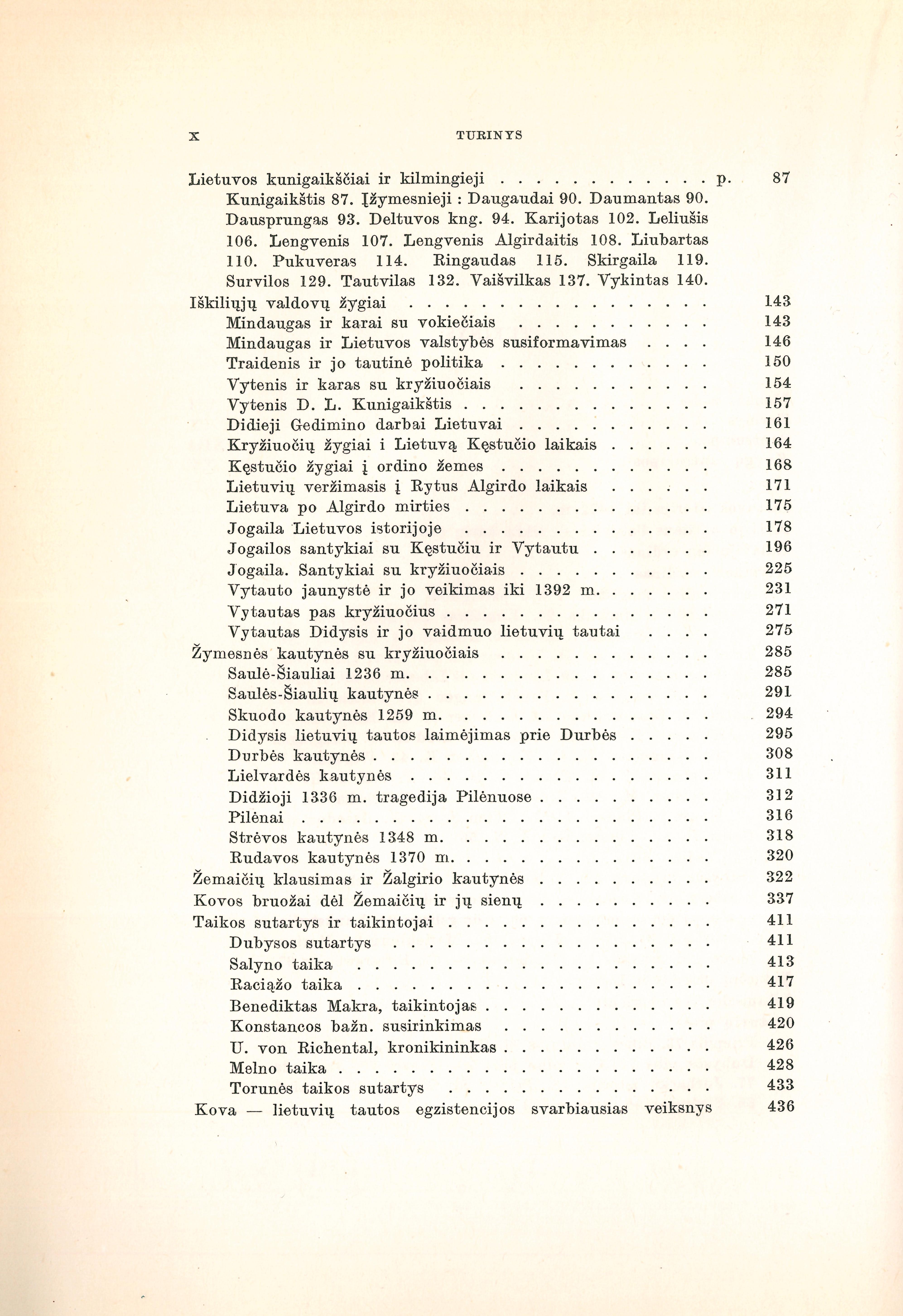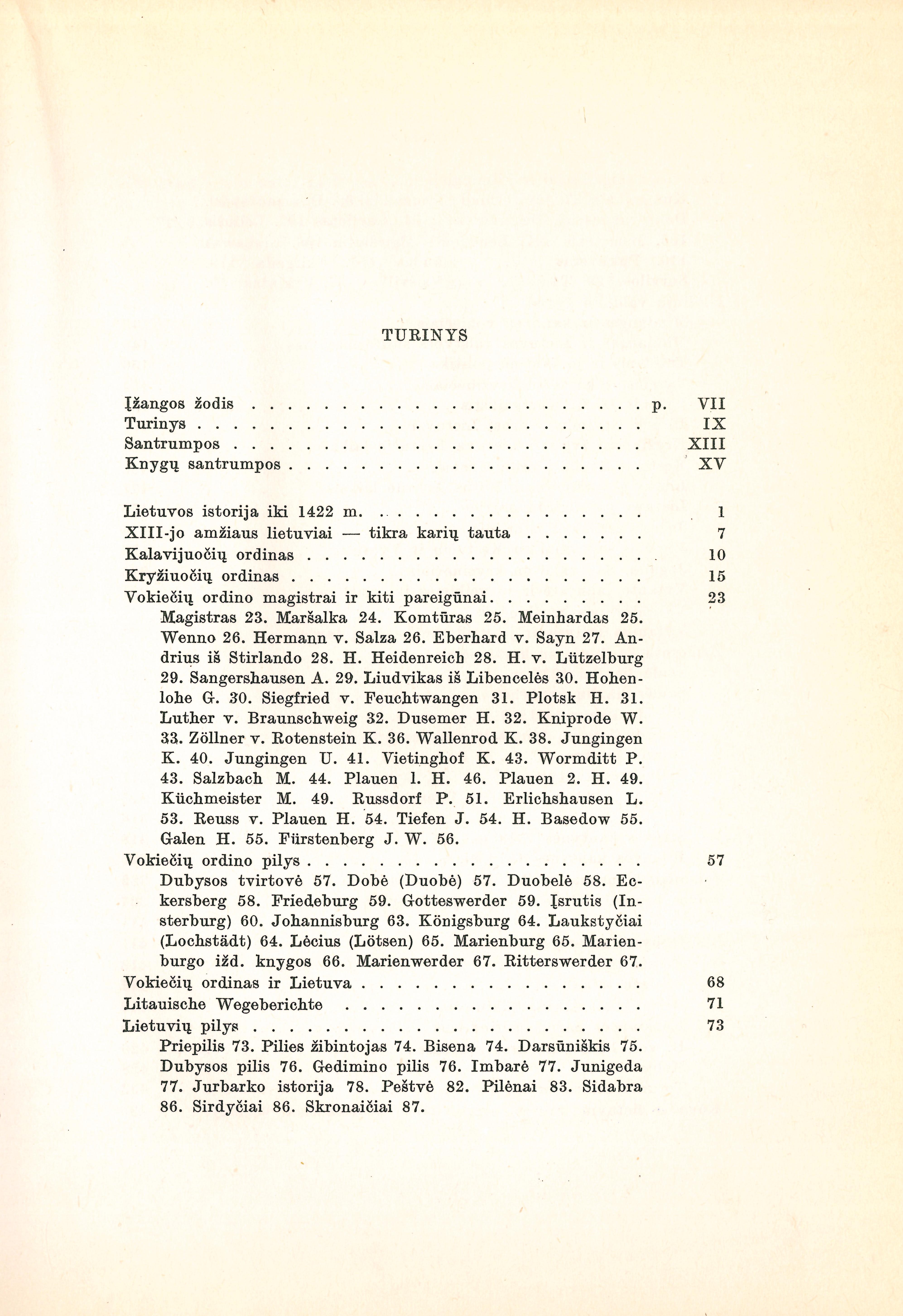 | Vokiečių ordino magistrai ir kiti pareigūnai (iš Lietuvių enciklopedijos); Vokiečių ordino pilys (iš Lietuvių enciklopedijos); Lietuvių pilys (iš Lietuvių enciklopedijos); Lietuvos kunigaikščiai ir kilmingieji (iš Lietuvių enciklopedijos); Iškiliųjų valdovų žygiai (iš Trimito 1939–40); Jogailos santykiai su Kęstučiu ir Vytautu iki 1392 metų (1935); Vytauto jaunystė ir jo veikimas iki 1392 m. (1930); Didysis lietuvių tautos laimėjimas prie Durbės 1260 m. (1960); Žymesnės kautynės su kryžiuočiais (iš Lietuvių enciklopedijos); Žemaičių klausimas ir Žalgirio kautynės (1960); Kovos bruožai dėl Žemaičių ir jų sienų (1935); Taikos sutartys ir taikintojai (iš Lietuvių enciklopedijos); Herojiški momentai Lietuvos istorijoje (1960). | |