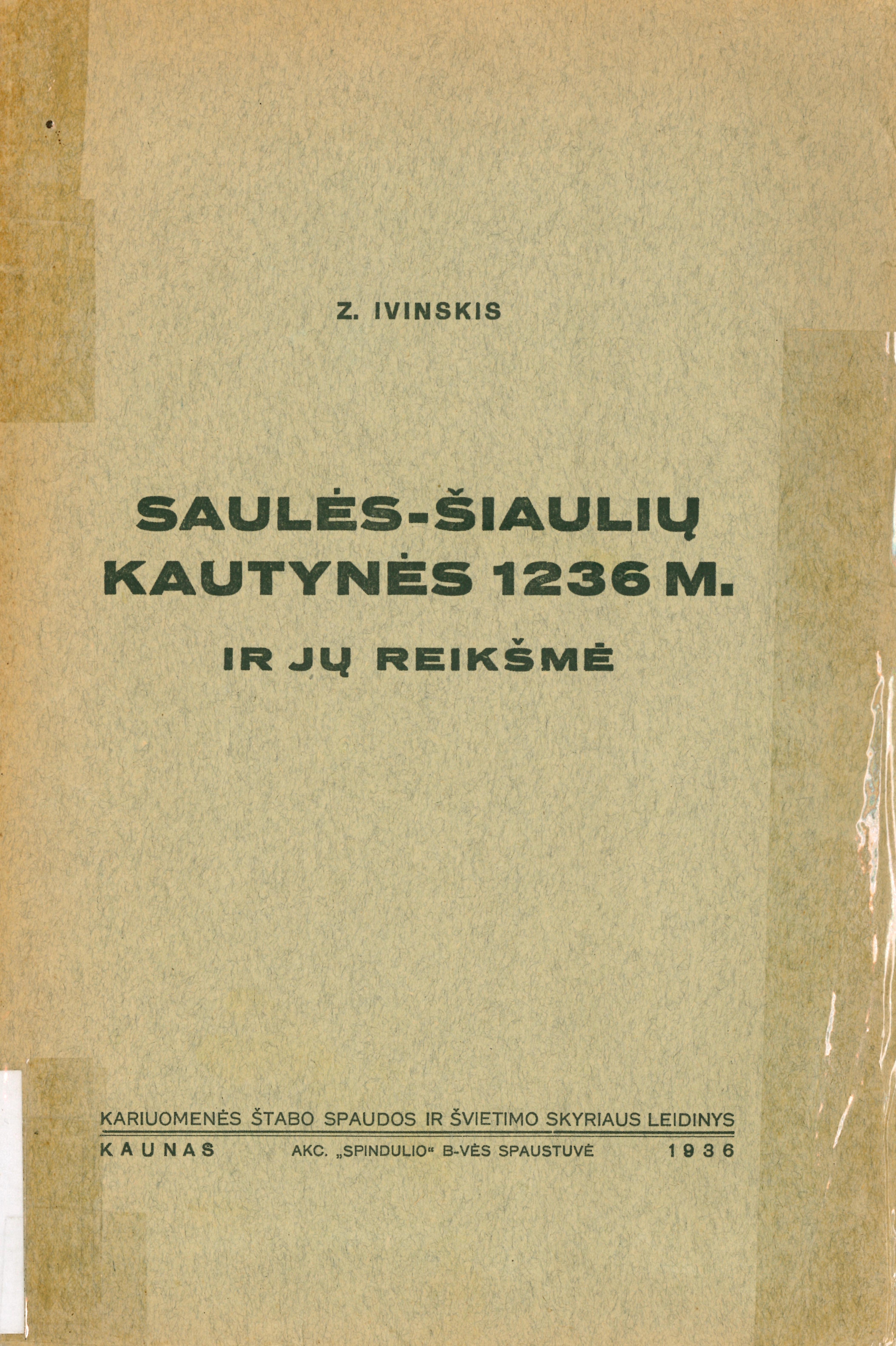 Saulės-Šiaulių kautynės 1236 m. ir jų reikšmė / Z. Ivinskis. – Kaunas : Kariuomenės štabas. Spaudos ir švietimo skyrius, 1936. – 50 p.