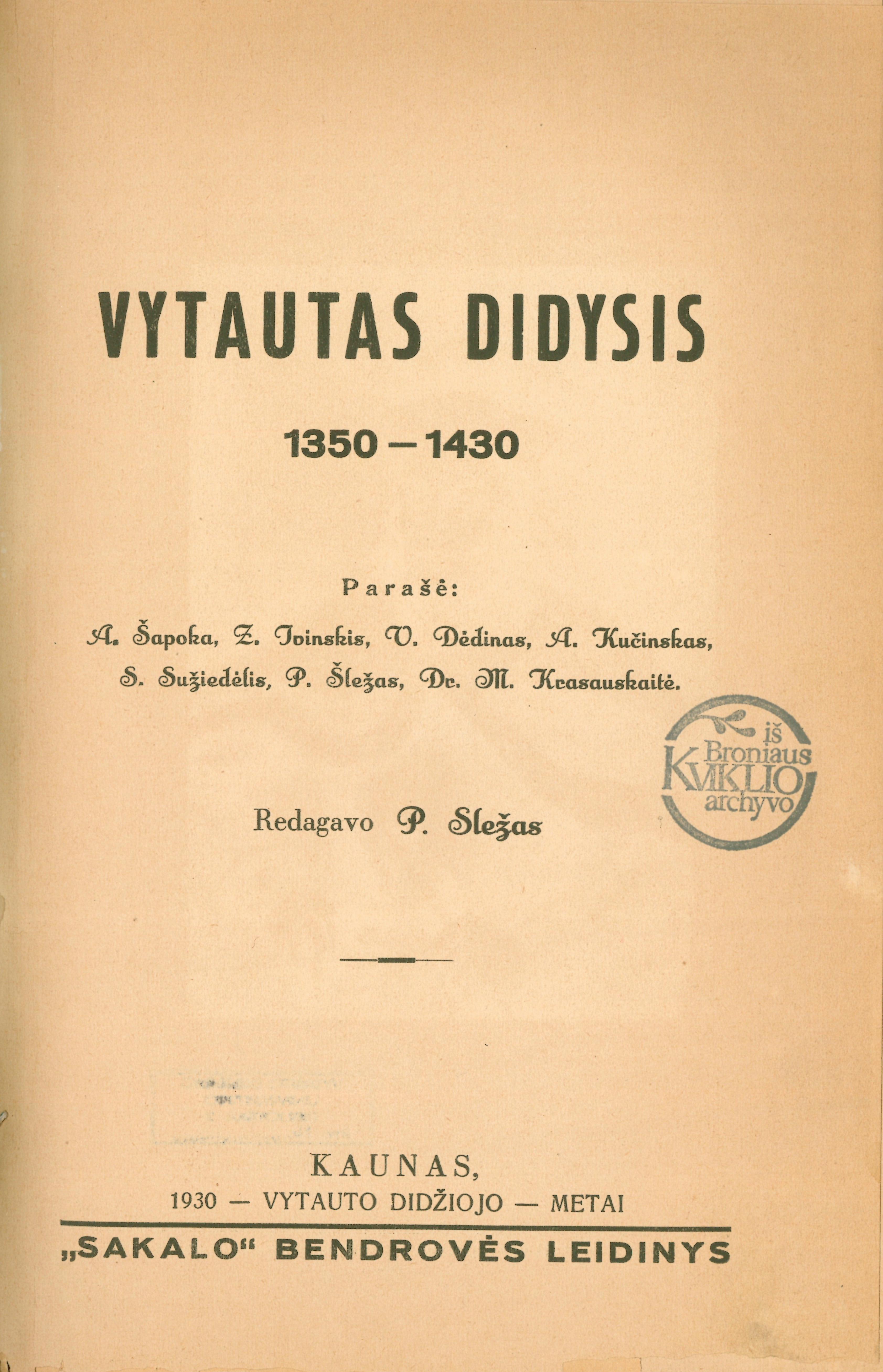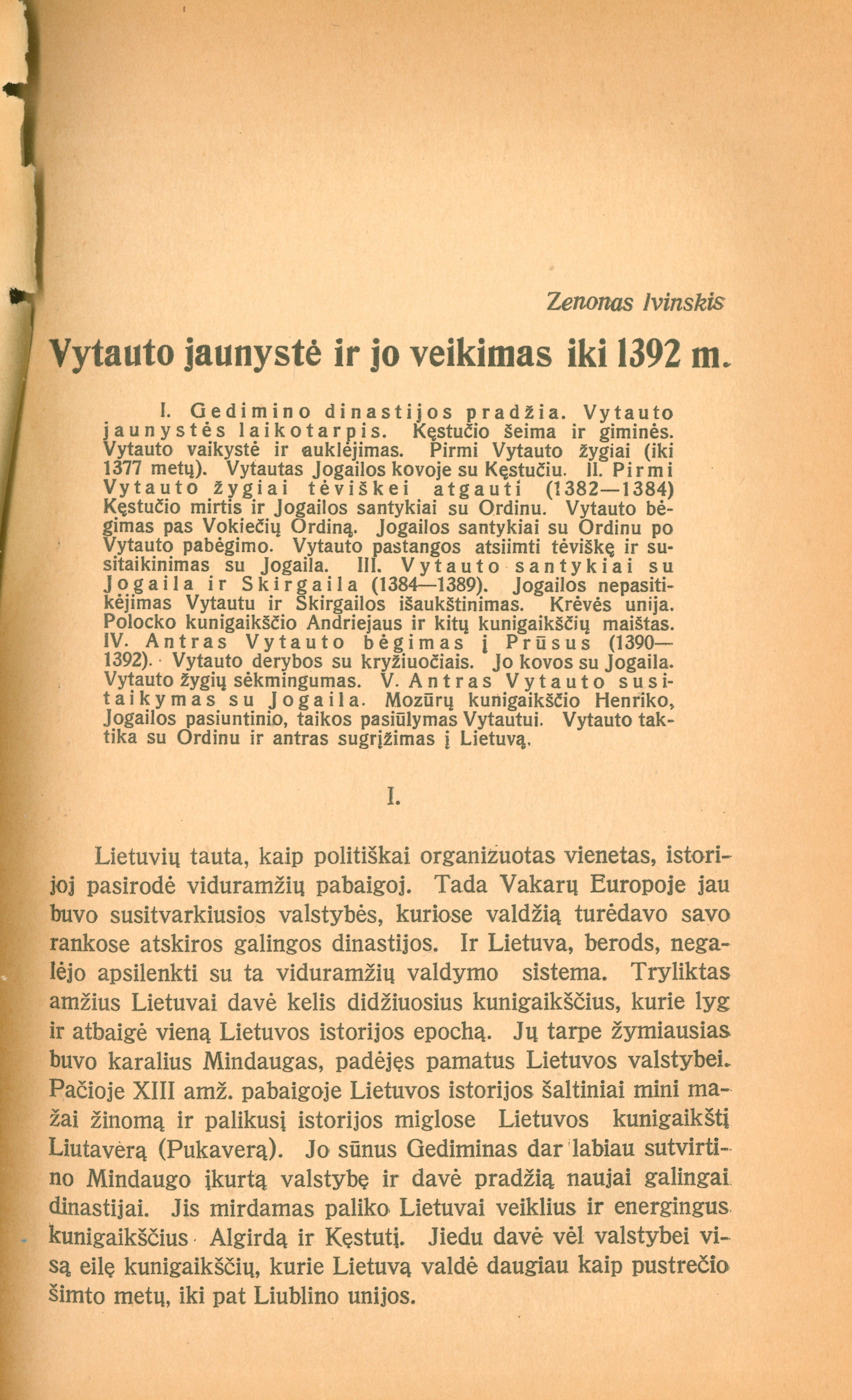 | Antraštė | Vytauto jaunystė ir jo veikimas iki 1392 m. / Z. Ivinskis. In: Vytautas Didysis, 1350–1430 / redagavo P. Šležas. – Kaunas: "Sakalo" bendrovė, 1930, p. 1-44 [lt] |